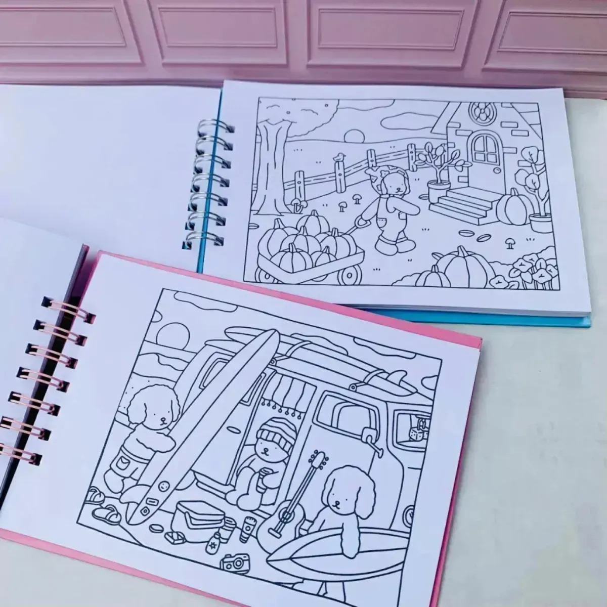 Design Style: The books often include hand-drawn illustrations of animals, snacks, and daily life scenes, popular for stress relief.